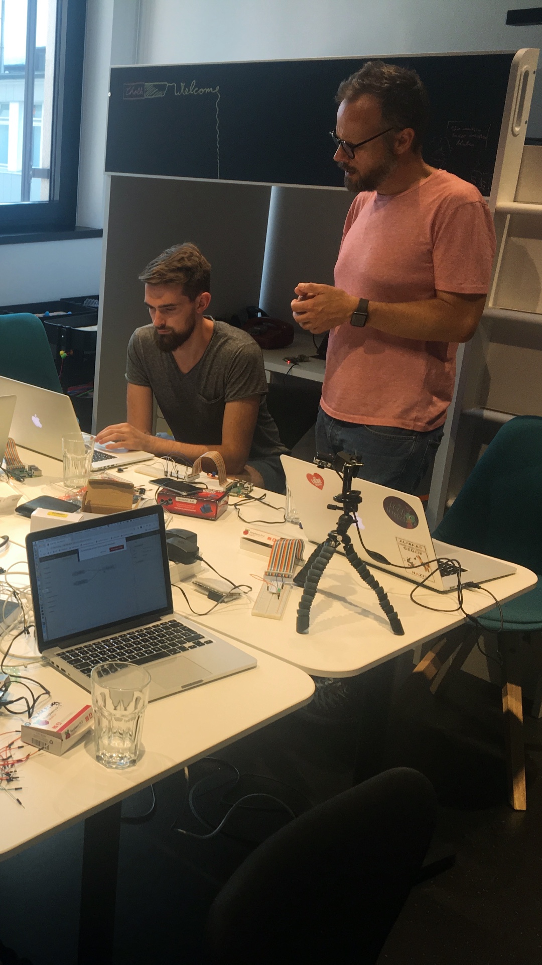Workshops are an essential part of knowledge transfer within the agency. Under the umbrella of the TechTrigger program, I conducted multi-week workshops (such as “Idea Driven IoT” or “Coding Javascript”) and prototyping sprints for clients, either alone or with co-hosts. Together with our Berlin innovation office, JMP, I designed an IoT pretotyping box for B2B workshops in the mobile communications sector.